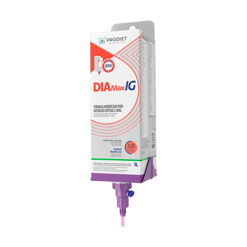 INFORMAÇÕES EXTRAS: O Diamax IG para uso com adaptador RTH Nouriva ajuda no controle glicêmico durante a alimentação enteral ou oral, disponível em 1L e tem conexão direto ao equipo Enplus. Proporciona mais nutrição com 28 vitaminas e minerais, L- carnitina e 18% de proteínas, além de ser isento de sacarose. A embalagem permite conexão direta com equipos Enplus/Cruz na bomba de infusão através do adaptador Nouriva Connect. Uma administração segura e prática no ambiente hospitalar.