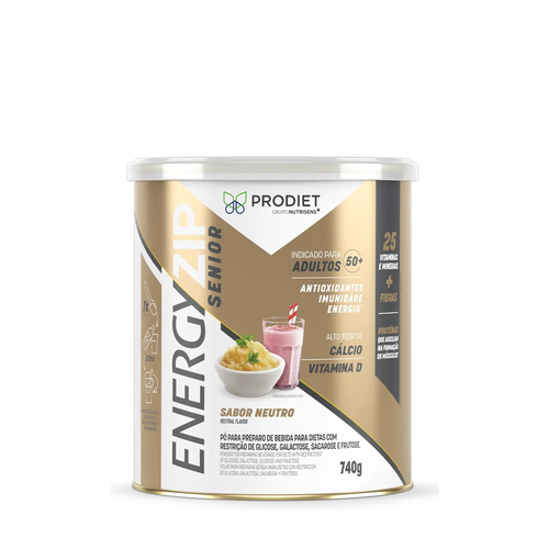 EnergyZip Senior é um Suplemento alimentar com 26 vitaminas e minerais e nutrientes antioxidantes que auxiliam na imunidade. Rico em vitaminas D, B6, 12, cálcio, fibras prebióticas, com 25% de proteínas e sem sabor, para ser adicionado a receitas doces ou salgadas.